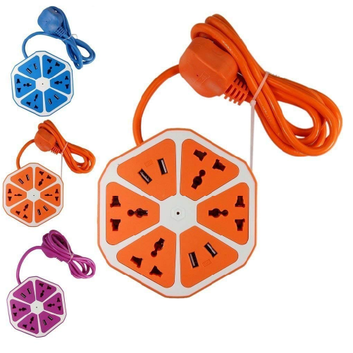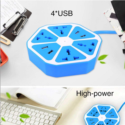 Hexagon Extension Board with USB Port, Extension Cords with Surge Protector, Power Socket Extension with 4 USB & 4 Sockets and 6 feet Cord Leng