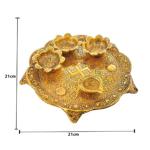 • Elegant Design: This Pooja Thali boasts a stunning golden aluminium construction, perfect for religious ceremonies and festivities.