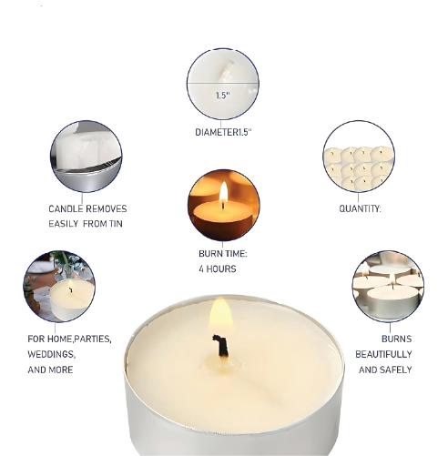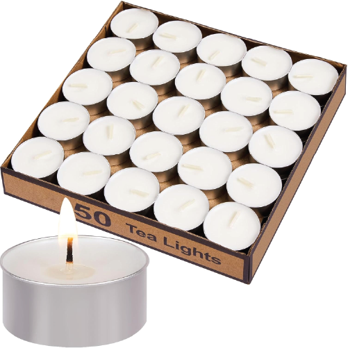 - Paraffin-Free 50pack Soy-Based Candles: Light up your space with our Soy Tea Lights Candles 50 Pack! Made with 100% soy wax, these clean-burning candles are perfect for creating a warm and inviting atmosphere in any room. Ideal for wedding events, relaxation, and spa, these candles are a must-have for any candle lover.